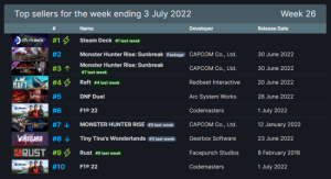 Steam新一周销量榜:Steam Deck五连冠 《怪物猎人崛起》突围