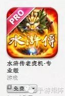《老虎机:水浒传》的前身是一款以水浒传为背景的街头老虎机游戏,最早出现在街头游戏厅中,后被移植到PC单机、乃至手游平台,在APP Store中,该游戏取名为《老虎机:水浒传》,收费模式为APP免费购买,游戏内货币付费内购。
