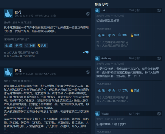 这次更新增强了玩家们对这款游戏的信心,游戏的热度也再次回暖,Steam平台的游戏在线人数从平均低于1000增长到了8000人左右,游戏的口碑已经开始有所好转。