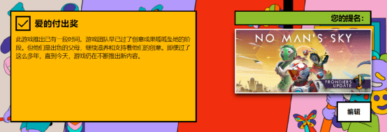 至此,《无人深空》进入3.8版本,成为了一个内容比较完善的游戏。经过五年的不懈耕耘,《无人深空》逐渐把自己打造成了玩家一开始希望它成为的那部作品。而且,这几年来的所有更新完全免费,游戏至今也没推出过任何DLC或是代币充值等收费项目。这种良心的态度正是许多玩家愿意给出好评的原因,游戏也在近两年的Steam游戏大奖中被玩家提名“爱的付出奖”。