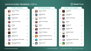 2022年9月全球热门移动游戏收入榜TOP10