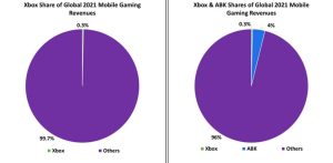 根据微软向 FTC 提交的图表,其 2021 年占全球移动游戏收入的份额仅为 0.3%。在动视暴雪(动视、暴雪、King)加入后,这一份额将增加到4%以上。