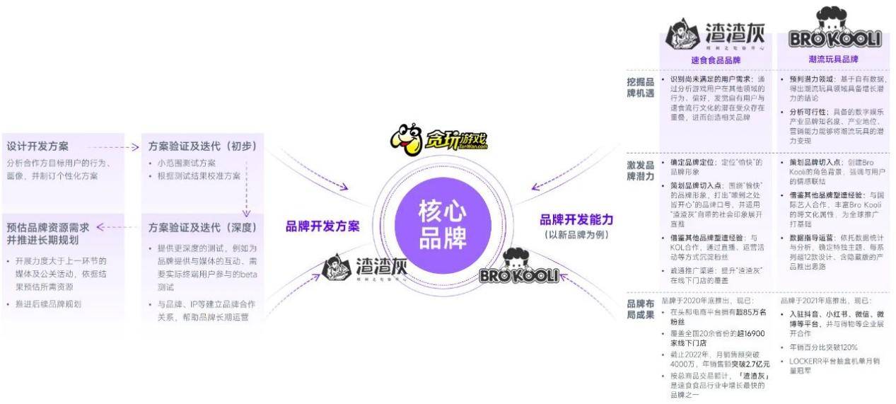 游戏产业链拓展的潜力主要在于为客户提供品牌开发服务,一定程度上可视为将贪玩游戏在细分领域积累的方法论包装成单独产品并为更多游戏研发商服务,相较于完全自用,开拓此项业务的优势在于增加营业收入、提升净利润率、反哺业务迭代升级等方面。同时,伽马数据认为此项业务的长期潜力主要在于:第一,业务需求较为强烈,较多游戏产品的表现不达预期并非源自游戏研发商的技术能力不足,主因在于未能识别用户真实表达、挖掘用户潜在诉求,而贪玩游戏的服务能够较快弥补其短板;第二,竞争压力相对较小,这是由于以科技驱动的用户洞察需要以大数据为基础、沉淀大量通用性经验、推出较多受认可的案例,换言之布局门槛较高;第三,存在客源优势,贪玩游戏自身即为游戏产业重要参与者,其对产业的理解将转化为吸引游戏企业的品牌之一,未来其在速食、潮玩等领域也有望取得近似加持。