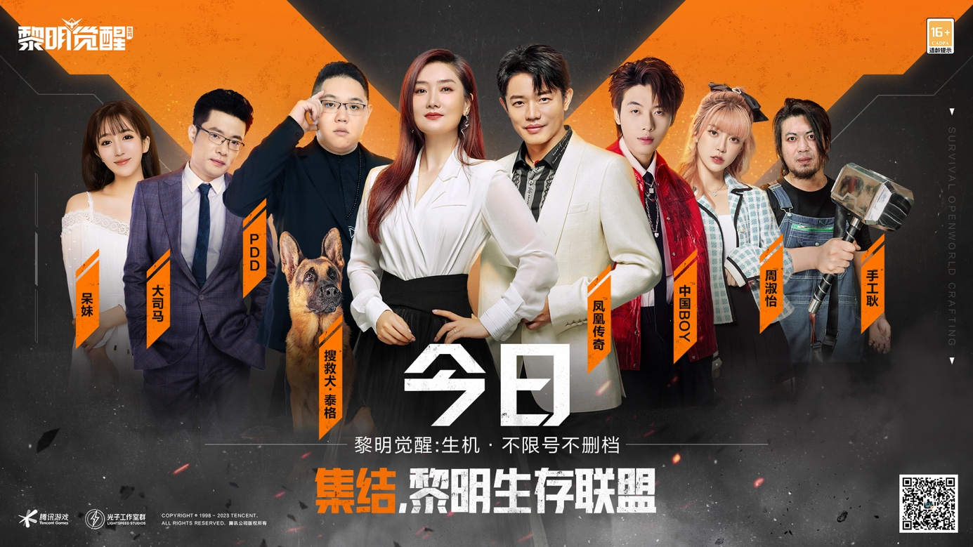 今日,由国际巨星威尔·史密斯代言,腾讯光子自研的开放世界生存手游《黎明觉醒:生机》正式开启不限号不删档!凤凰传奇、PDD、中国BOY、周淑怡、呆妹、大司马、手工耿等一众明星幸存者组建的“黎明生存联盟”向广大幸存者发起“组队”邀请!