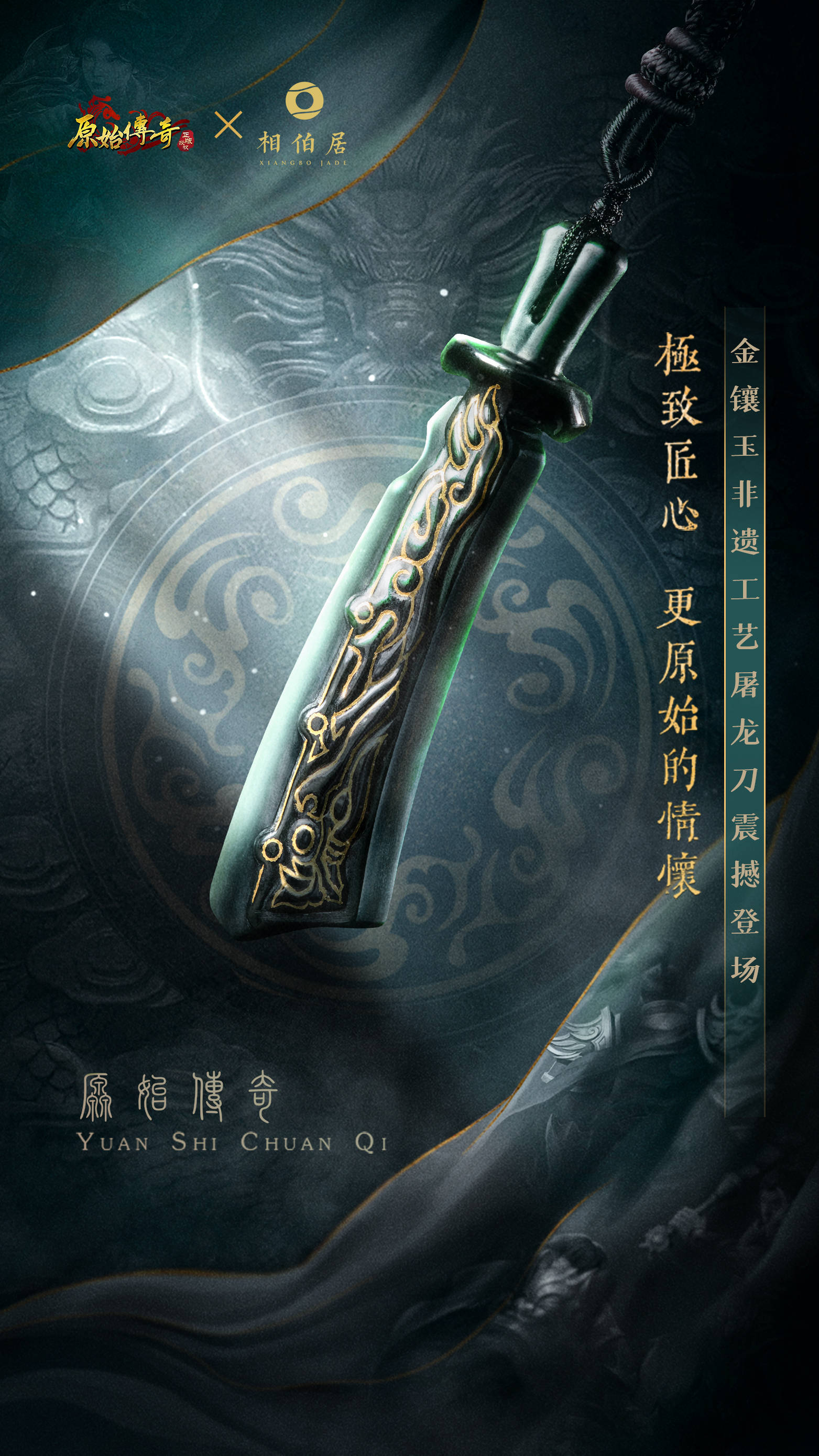 “金镶玉屠龙刀币”的设计灵感来源于战国时期的六字刀币,取其“建邦/复国”之意,和《原始传奇》“原汁原味,经典复刻”的理念相吻合。刀币正面的纹饰灵感则来源于战国时期的镂空龙型玉佩,作为符号的背后是文化的沉淀与输出,让大众对于金镶玉工艺更加了解,让文化非遗走进生活,让文化真实可感。