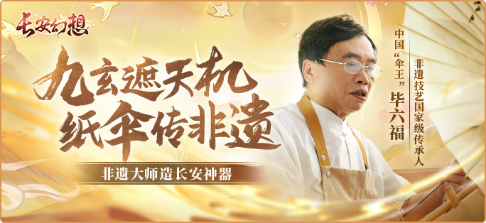纸伞传非遗,匠心造神器。【非遗油纸伞x长安幻想】新门派资料片重磅上线!大家期待的《长安幻想》非遗联动再次来袭,本次联动聚焦于九玄的门派武器——伞!《长安幻想》手游携手泸州分水油纸伞非遗传承人-毕六福以及国家健将级武术运动员小宇咂,共同揭秘了长安九玄神器的前世今生!让分水油纸伞走进更多人的视野里,让大家感受到非遗文化的魅力。当我们在风雨中撑起一把油纸伞,苍茫的中华文明也随着雨水,从伞面蜿蜒而下。这把伞不仅见证着祖先精湛的手工艺术和匠心精神,还融汇着中华民族精神与文化素养,承载着意境深远的东方美学,寄托了人们对美好生活的向往。