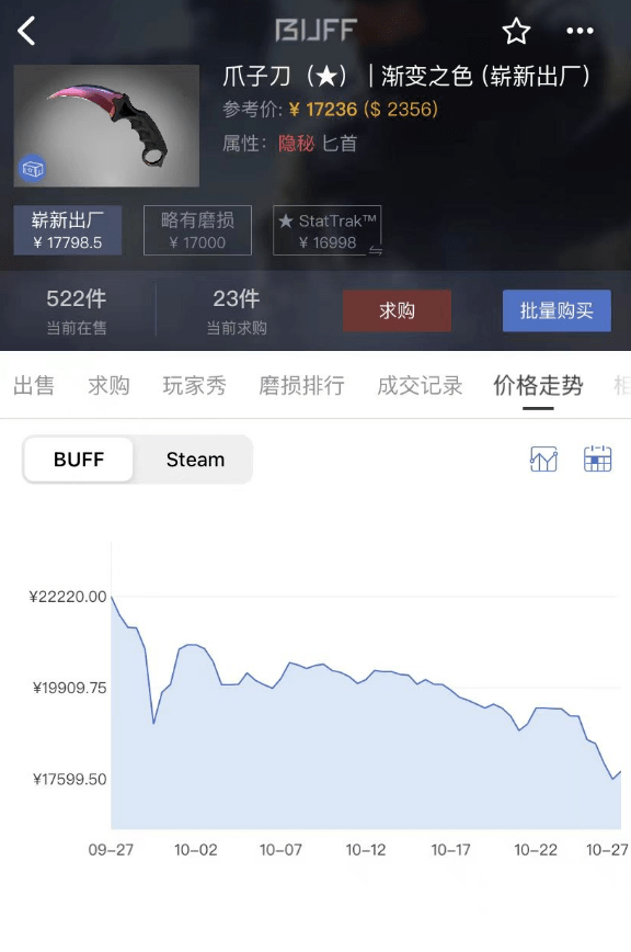 后续的半个月时间里,其饰品市场开始冷却,大量饰品呈现降价趋势,甚至连市场收购和控价的商人也沉寂了起来,自市场到游戏都出现了唱衰的声音。