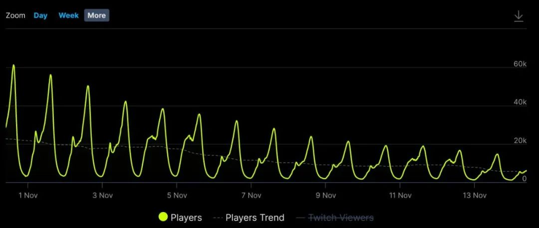 从接连反转的公告中也可以看出各方对《完蛋》的争夺激烈。没人知道短剧游戏这个风口到底能吹多久。据SteamDB网站统计,《完蛋》的日活用户已步入下行曲线,热度正在迅速减退。