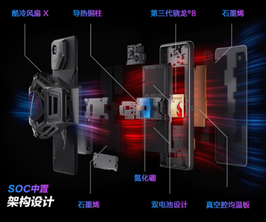 在性能方面,ROG 8系列搭载第三代高通骁龙8 Gen3 5G移动平台,性能大幅提升30%,能够满帧运行各类手游。同时,配备了全新的矩阵式液冷散热架构8.0和酷冷风扇X,确保性能的稳定和散热效果出色。