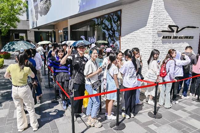 消费者排队购买安踏 × 原神「魈」&「七七」联名鞋款