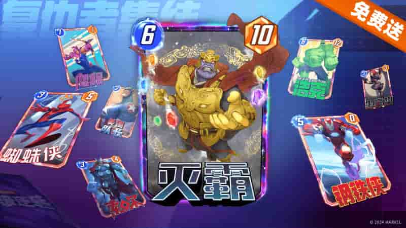 完成新手任务后,探员们即可开启复仇者集结任务,通过完成任务达到不同积分级别,便能解锁对应的复仇者联盟成员绝版变体。完成所有任务即可免费解锁终极奖励——超级反派灭霸的中国风变体卡牌!