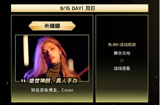9月15日15:00开始,卡琳娜将在杭州CJMF·不止音乐节的次元舞台开启营业模式,与所有来到现场的小伙伴进行互动,据说会随机掉落无差别饭撒,在音乐节现场人人都能拥有的那种!打招呼、飞吻甚至更多……互动会一直持续到签售结束。但是都会有哪些具体互动内容,现在就不告诉你,嘿嘿~