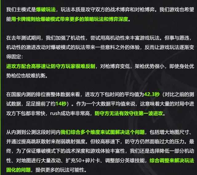 比如在玩家沟通层面,团队就通过社区直通车、开发者日志等形式保持高频交流。针对碎片卡系统平衡性争议,他们对娱乐和排位模式采用了分卡池机制,同时还在排位加入了BP规则,兼顾不同层次玩家的需求。针对对局节奏与移速等问题,团队也使用了比较科学主义的方式来对玩家进行解答——建立了包含跳跃散射、地图动线、角色机动性等多维度的动态模型。