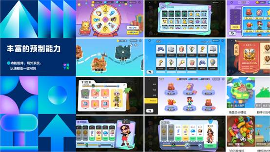 轻游梦工坊预制了丰富的功能组件、局外系统和玩法模板,开发者无需写代码即可编辑关卡、资源、数据、逻辑,制作游戏轻松又高效。