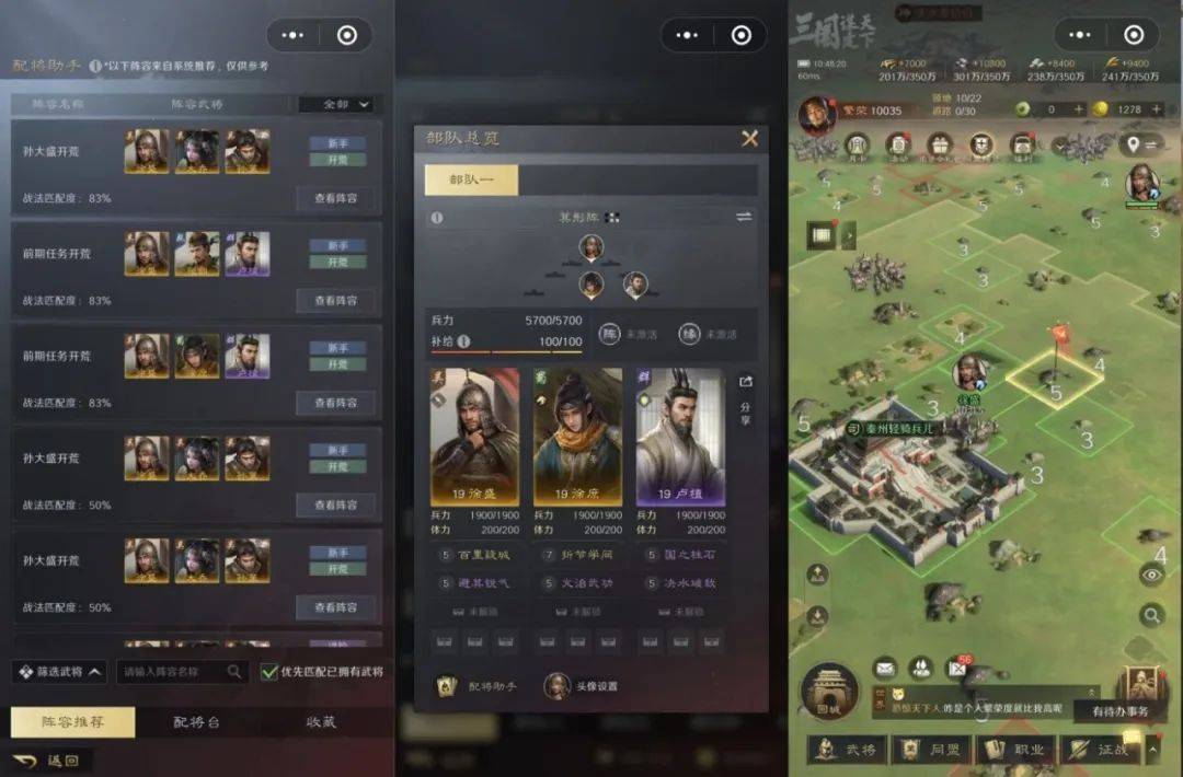 结合三谋的产品特点不难发现,这款游戏的很多设计与小游戏的游玩场景都挺契合的。比如游戏主打一个减负轻量化操作,打地自动搜索自动铺路,武将一键配队智能升级,联盟自动加入可随手委任等等。许多SLG的复杂操作,在三谋中都可以一键完成,对于轻度玩家来说非常友好。