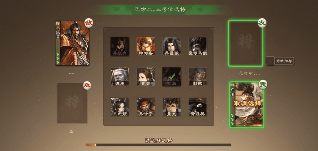在对局开始前,玩家还可以根据特定顺序,在共有的将池里进行选将。由此一来,选将局面将变得透明,对局的策略博弈也更加直观。玩家可以通过抢先获得强势武将或拆开特定武将组合等方式获得开局优势,而这种对局优化也将进一步丰富游戏策略对抗的维度。