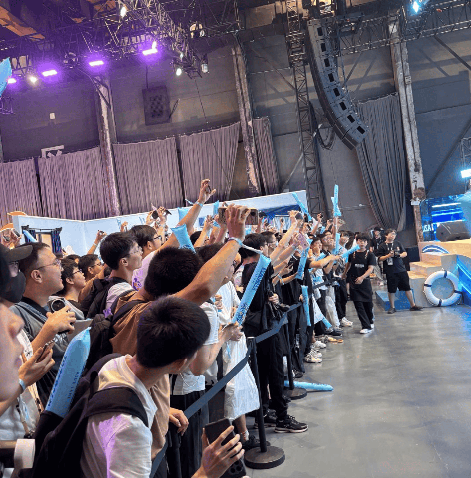 我看见工作人员举着牌子时时刻刻观察排队状况,将排队的玩家从一列变成两列,再变成三列的整齐队伍形状,听见隔壁排队更短的小游戏区域有工作人员举着小喇叭引流,分散过于密集的人流。走到舞台区域时,现场也为玩家留出一大片的观看区域,方便他们驻足欣赏演出。