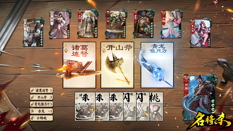 《名将杀》推出了”多装备自由搭配”玩法。每位武将可同时装备3张任意类型装备牌,通过效果叠加打造个性化战斗。输出型武将可叠加攻击类装备实现“秒杀全场”的壮举,辅助型武将则可通过防御与增益装备成为团队核心。