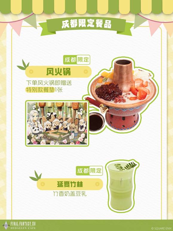 例如前不久刚刚在成都大魔方招商花园城开业的海德林咖啡餐厅成都分店,在开业当天让商场保安直呼活久见:“我干了这么多年,第一次见到游戏主题餐厅能排队排到商场门口的。”而成都分店特有的限定餐品“风火锅”和“延夏竹林”,更是将游戏元素与本土美食完美融合,让不少玩家直呼”这波联动我服”。