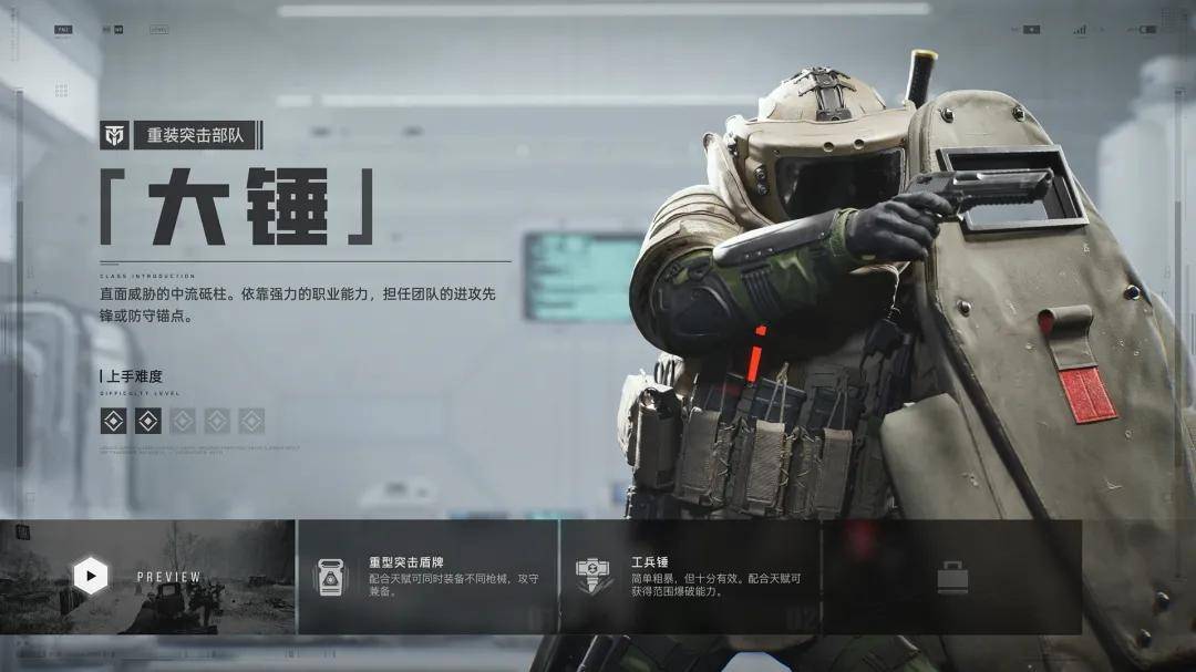 例如可以通过天赋树点出减伤和多枪械共持的“大锤”,既可以举起盾牌掩护队友进攻,也可以单兵作战在防守的同时找机会重创敌方。