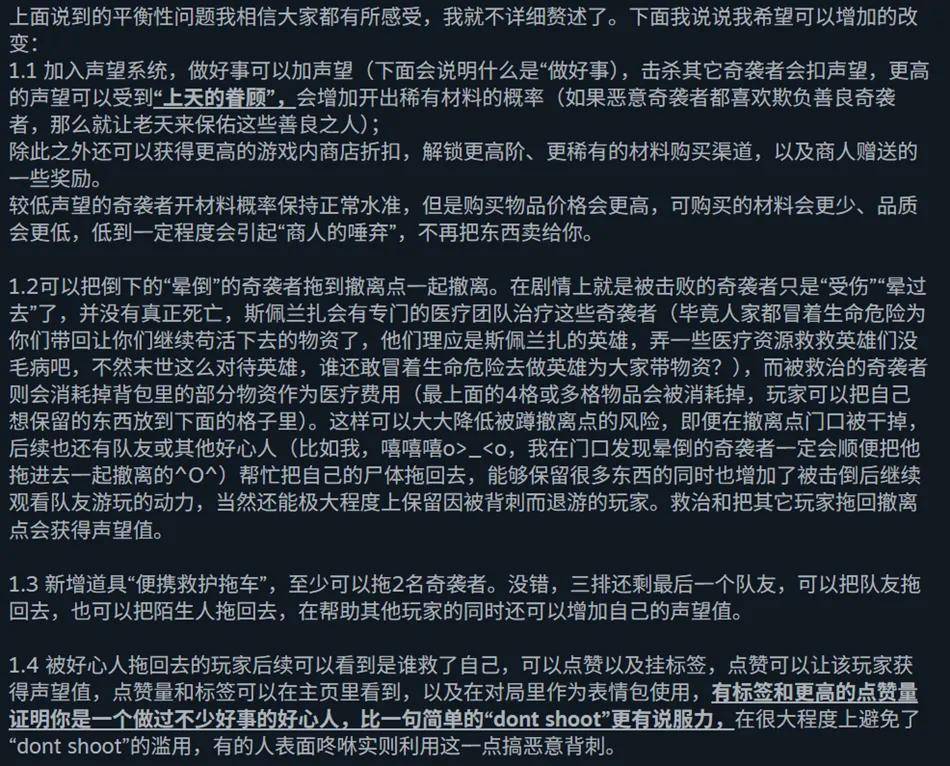 正如现在许多玩家所指出的,制作组虽然可能倡导和平游戏,但也对“背刺”行为相对纵容,玩家需要做好“被偷屁股”的心理准备。因此,长线运营的关键就在于精细调整这个“危险系数”,通过装备掉落机制、撤离点设计、赛季性活动等方式,不断微调游戏节奏,让不同类型的玩家都能找到自己的生存空间和乐趣来源。