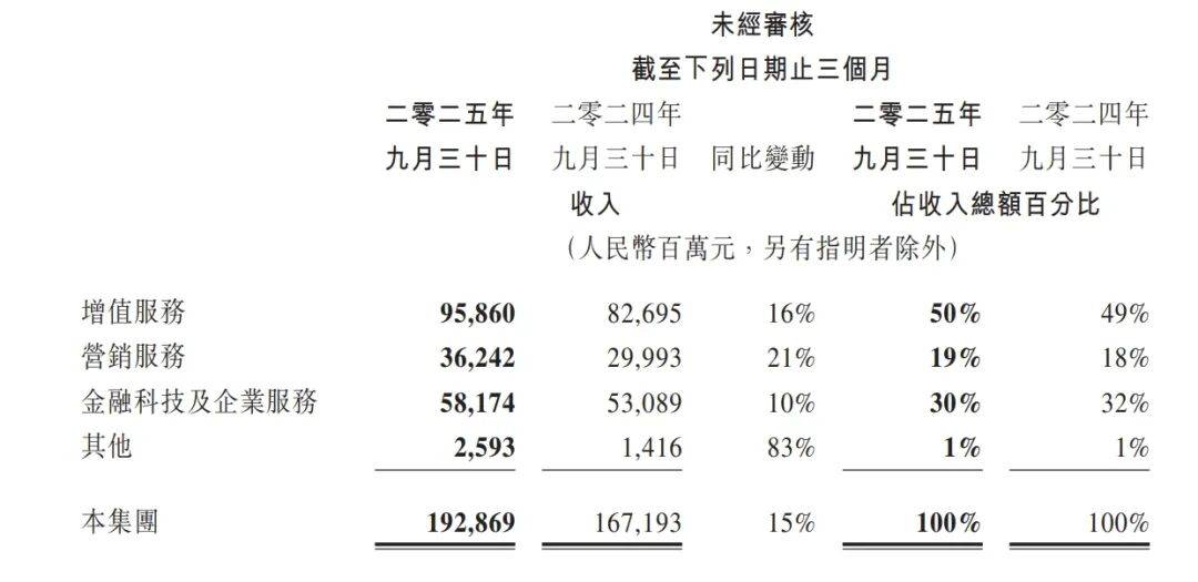 这其中,腾讯第三季度增值服务收入达到959亿元,实现同比16%增长,其中游戏业务收入为636亿元,其余为社交网络服务收入,为323亿元。