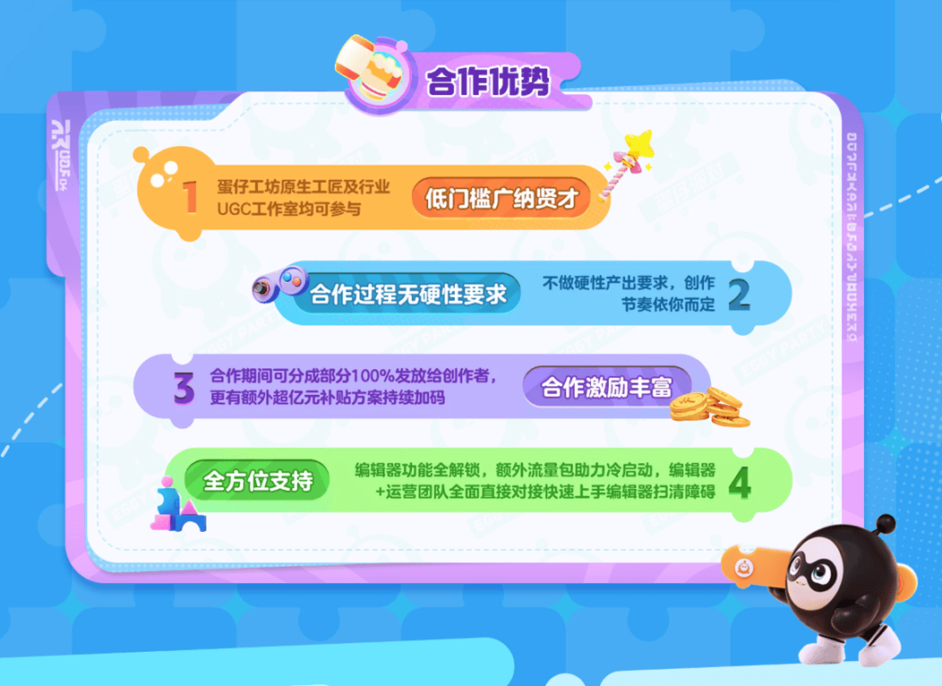 整体来看,蛋仔UGC平台呈现出一种“低风险、高潜在收益”的特点。