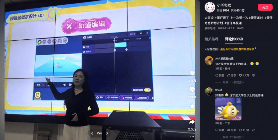 最近,随着蛋仔“高校匠星创造营”在各地展开,高校专业课堂纷纷摇身一变为蛋仔UGC创作大师课,大批参与课程的同学也在社交平台上分享了上课实录。
