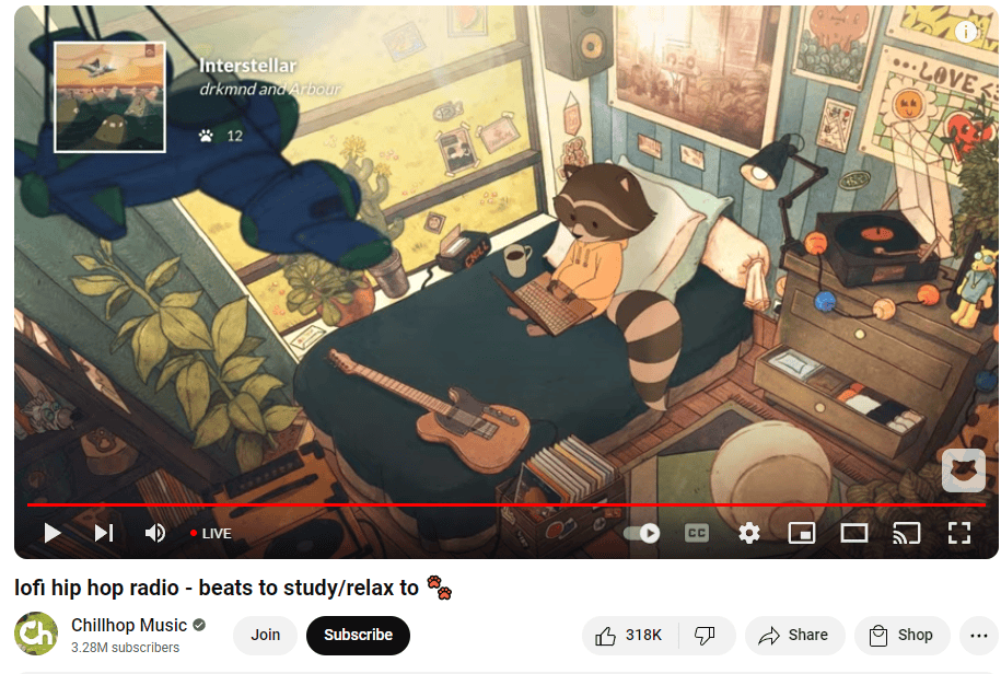 同时,寻找那些已经证明受欢迎的赛道。你无需重新发明轮子。轻松休闲的YouTube频道拥有独特的审美和需求(工作时的背景音乐),而Spirit City完美地满足了这一需求,所以它成功了。
