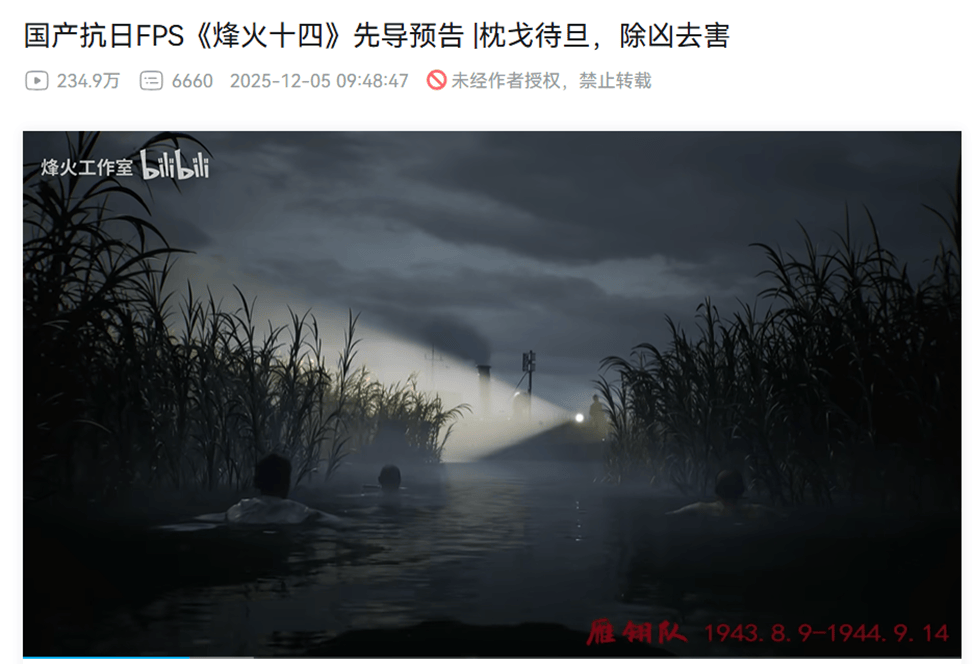 最近,关于国产抗日游戏的讨论又热了起来。直接原因,是网上出现了《烽火十四》的预告片,以及另外几款类似题材游戏的消息。间接原因,今年是抗日战争胜利80周年,而且由于“车力巨人”的错误发言,使得中日关系再度绷紧。