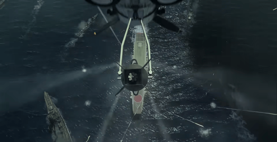 后来的cod14、18两部重新回到了二战题材上。比如《使命召唤18》就有中途岛战役,重现了美军飞机俯冲轰炸日军航母的场面。