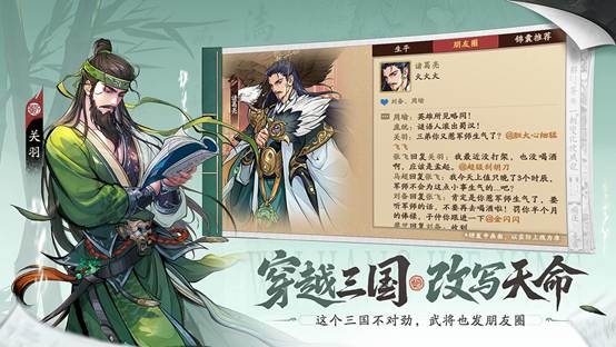 除了策略对决外,《三国杀武将觉醒》还带来了别样的冒险故事。你将穿越千年时空,置身风云激荡的三国乱世,于“天书幻境”中感受武将们另一面的生活,在这里将会邂逅“江东房产销售”徐盛、“音乐家”周瑜、“HR”荀彧等武将未曾展现过的故事!各位主公还需循着蛛丝马迹,与各方势力诸侯争夺“天书”碎片,于诡谲迷局中守护关键角色——每一次抉择都关乎三国命运,是促成圆满结局、改写既定天命,还是因一念之差留下千古遗憾?全程都将充满未知与惊喜等你书写。
