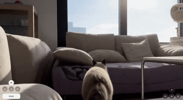 比如它最基础的功能是图像生成三维场景,只需上传一张图片,AI就能自动构建出完整的3D环境。你大可以尝试下将自家的“爱宠”做成游戏,然后操控它满屋子乱逛,出来的光影效果以及猫猫的动作连贯性,已经比很多3A大作还要好了。
