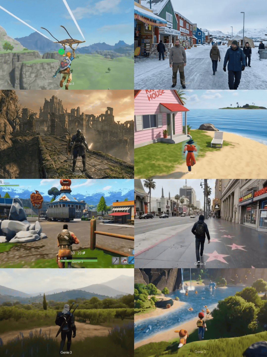 这也是为什么,虽然前年Sora 出现时已经有人用它生成过《我的世界》风格的视频并引发过一波讨论,但Genie3 带来的反响似乎更具体。Sora 生成的视频固然震撼,但它终究是预先渲染好的、不可交互的影像。而Genie3 则允许用户实时走进那个生成的世界,并且通过提示词去修改它。