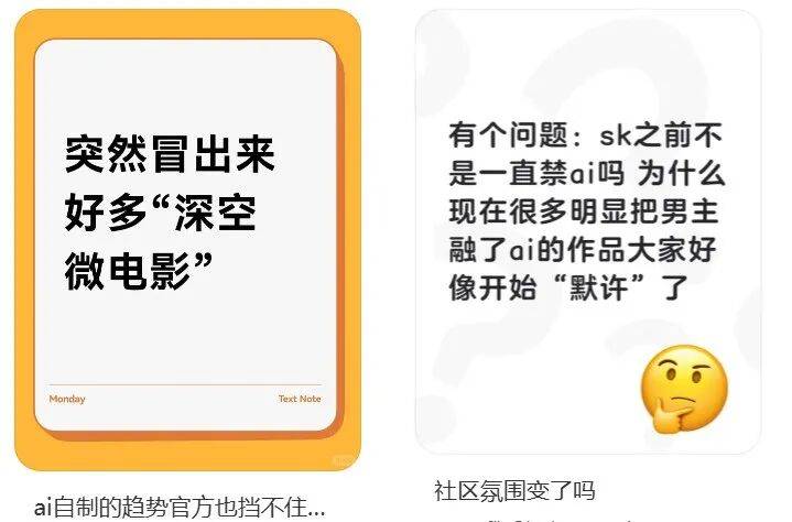 与此同时,社区讨论中关于AI的维权帖子层出不穷。每过一段时间,就会有玩家发现男主形象被融进了某部AI漫剧,希望叠纸游戏法务部官方下场进行维权。