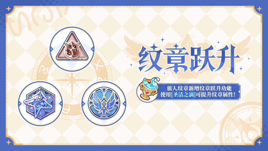 此外,本次版本更新后,旅人相关优化内容也同步落地。首先,旅人纹章新增「纹章跃升」功能,通过使用道具「圣洁之滴」,可指定提升纹章属性。同时,旅人【千都世】的部分潜能效果获得调整,期待这位少女在战斗中能有亮眼的发挥,而其他旅人的部分潜能文本描述也获得统一优化。