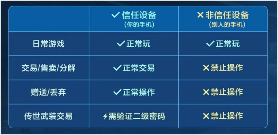 在这套三层防护体系保护下,二级密码的核心作用是防范敏感操作,保护账号内的高价值资产,是整个三层防护体系的基座。在此基础上新增的安全模式则是通过设备的管控将防护范围扩大到普通资产,提升防护强度。最后,独立于密码体系之外的设备与实名核验则是在玩家不慎泄漏了自身二级密码后的兜底措施。