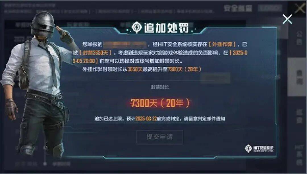对于违规账号,游戏一直采取零容忍的态度。HIT 1.2更新长期封号措施,将长封时限从10年提升到最高20年,并且让玩家参与到处罚时间的设定之中。这样的规则设计不仅能震慑作弊玩家,也让合规玩家感受到了官方坚决维护公平竞技环境的决心。