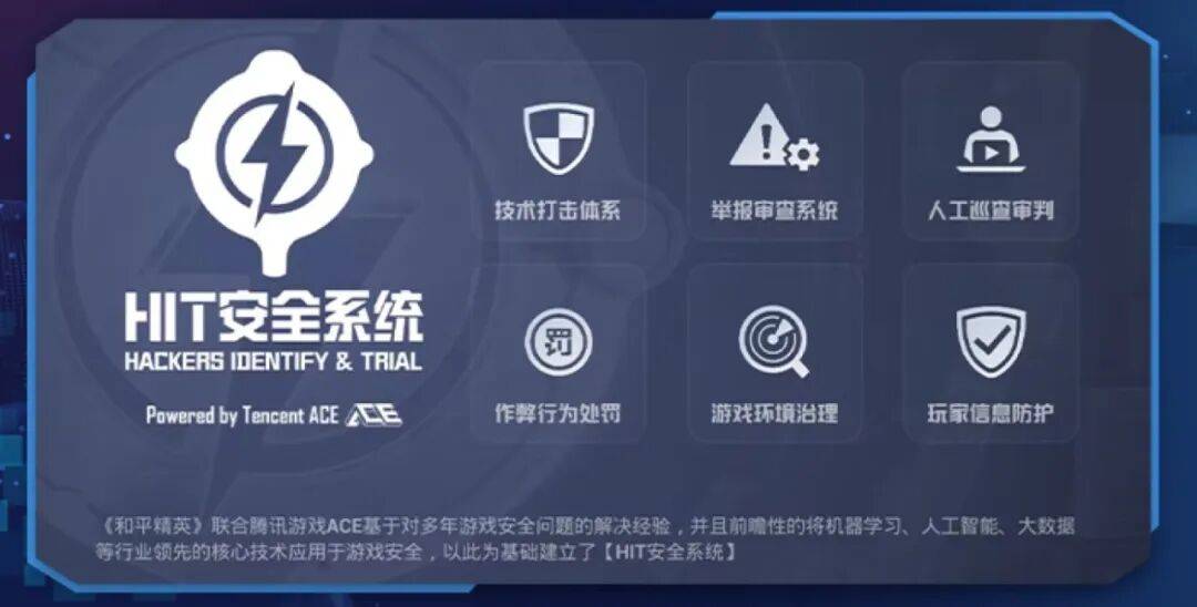 自上线以来,《和平精英》就非常重视维护绿色健康的游戏环境。游戏依托腾讯ACE的技术支持,在2024年上线HIT安全系统(HACKERS IDENTIFY & TRIAL),结合游戏自身的玩家生态推出六大安全模块,从账号安全、隐私保护、外挂治理等多维度展开防护。