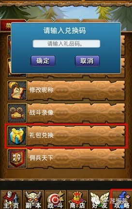 2、点击【礼包兑换】弹出兑换框,输入兑换码。