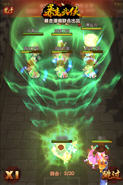 暴走漫画联合出品《暴走武侠》震撼来袭。首款顶级引擎Unity3D打造的Q版3D卡牌手游,颠覆传统卡牌类型,暴走漫画的全面植入,更让江湖不同凡响。让我们抢先过把眼瘾,瞧一瞧超炫酷的战斗场景。